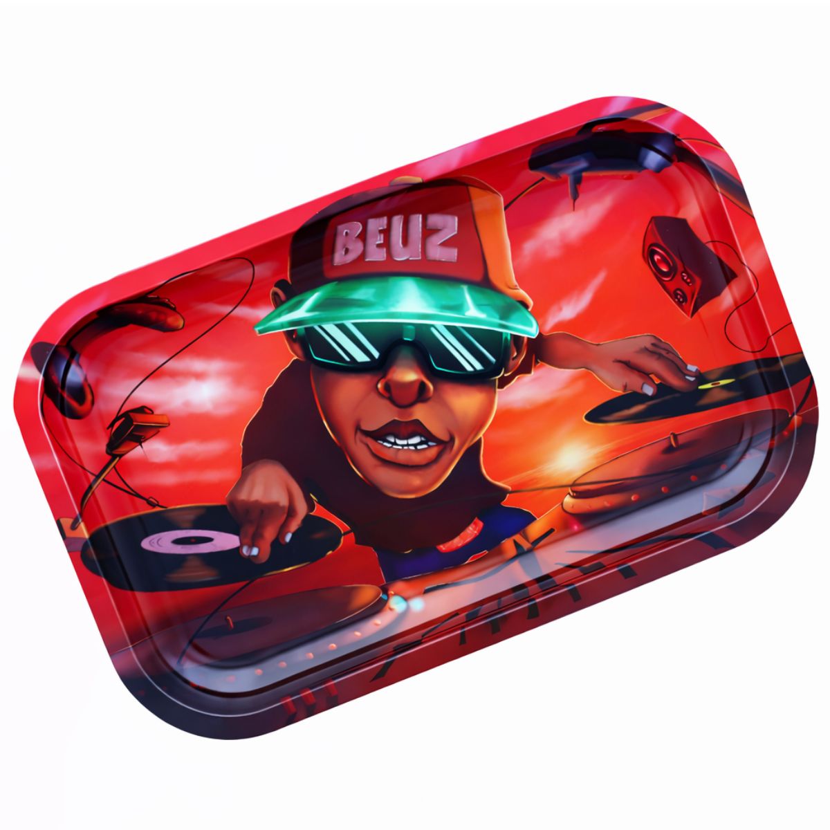 La bandeja de liar Beuz Rolling Tray DJ Beuz Medium de 27,5 x 17,5 cm es una bandeja de preparación con diseños gráficos desarrollada para un uso organizado dentro de los mercados de accesorios para fumadores adultos. Fabricada en metal duradero, esta bandeja de liar proporciona una superficie estable y reutilizable adecuada para las tareas de preparación diarias. El diseño de DJ Beuz ofrece una identidad visual audaz y contemporánea que respalda los surtidos minoristas centrados en el estilo de vida y la novedad.