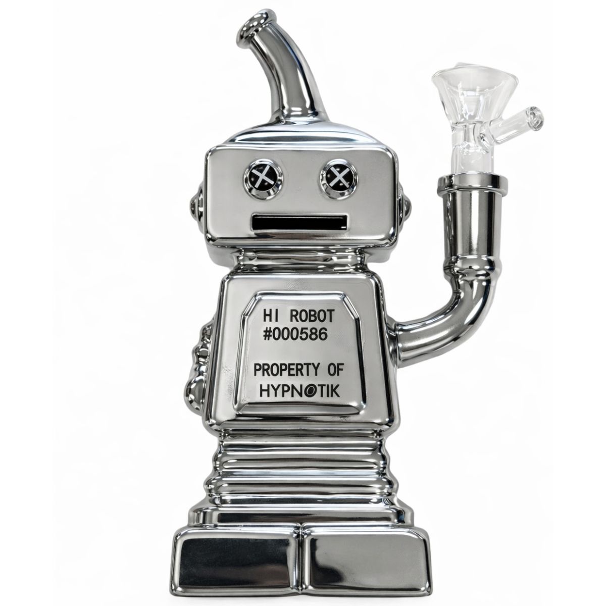 La pipa de agua de cristal High Robot de 16 cm es una novedosa pipa de agua desarrollada para el mercado de accesorios de fumadores adultos. Con un diseño escultórico inspirado en un robot, esta pipa compacta de 16 cm combina un atractivo visual temático con la funcionalidad estándar de una pipa de agua en un formato que ahorra espacio.