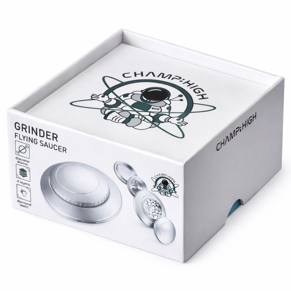 El Grinder Champ High Silver Flying Saucer es un accesorio de trituración novedoso desarrollado para mercados de accesorios para fumar de uso adulto. Diseñado con una forma distintiva inspirada en un platillo volador, este grinder combina un estilo decorativo con una capacidad de trituración funcional, ofreciendo una diferenciación visual de los formatos de grinder redondos estándar. El acabado metálico plateado ofrece una apariencia limpia y moderna, adecuada para entornos minoristas orientados al estilo de vida y a la exhibición.