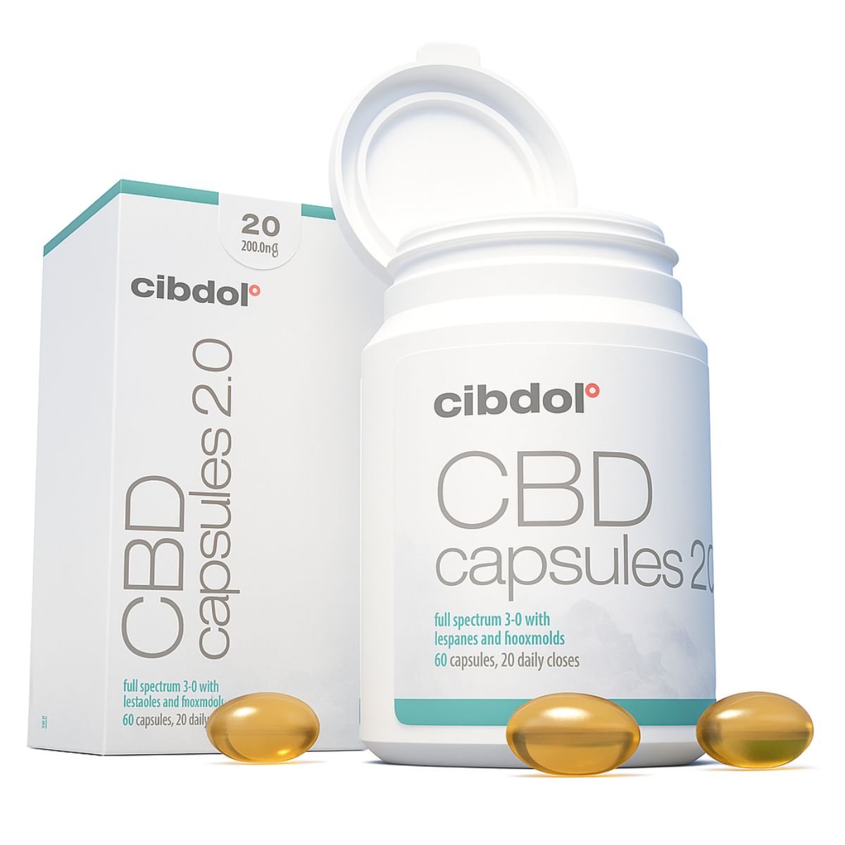 - 1 × Cápsulas blandas Cibdol 2.0 con 20% de CBD y 2000 mg (60 cápsulas) en un envase sellado