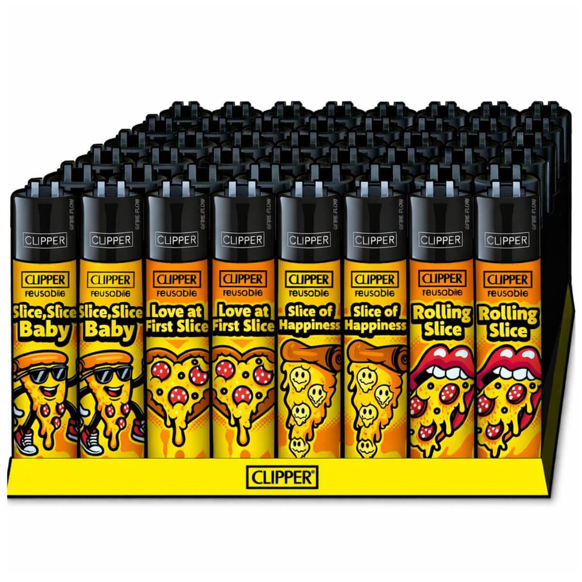 - 1 expositor de venta al por menor que contiene 48 × encendedores recargables Clipper Classic Large Pizza #2