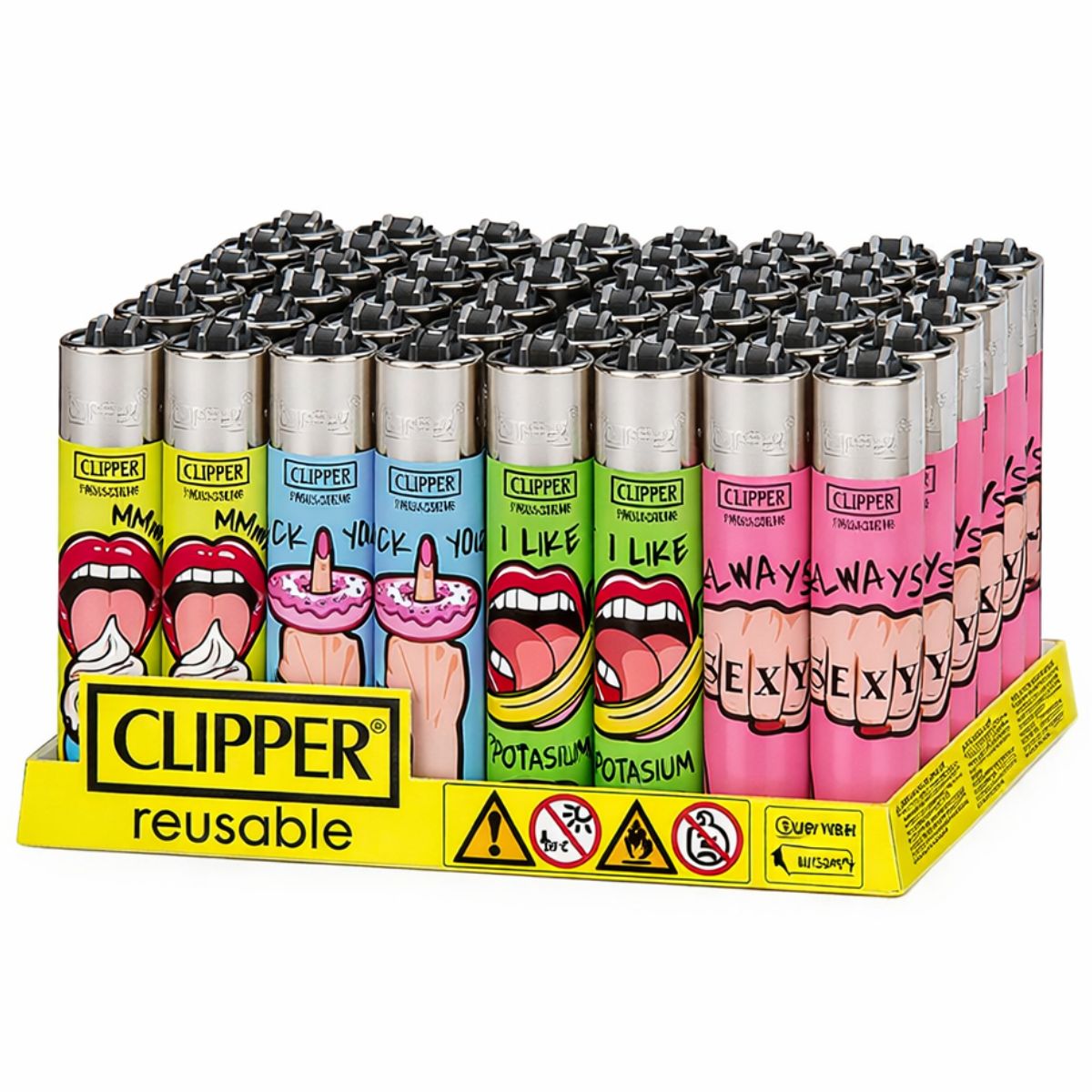 Los encendedores Clipper Classic Large Sexy combinan el conocido diseño recargable de Clipper con atrevidos diseños de estilo de vida. Fabricados en el formato Classic Large, estos encendedores ofrecen un encendido fiable, reutilización y un fuerte impacto visual. Se suministra en un expositor de 48 unidades listo para colocar en el estante, este producto es ideal para la distribución al por mayor y la venta al por menor de accesorios para uso adulto.