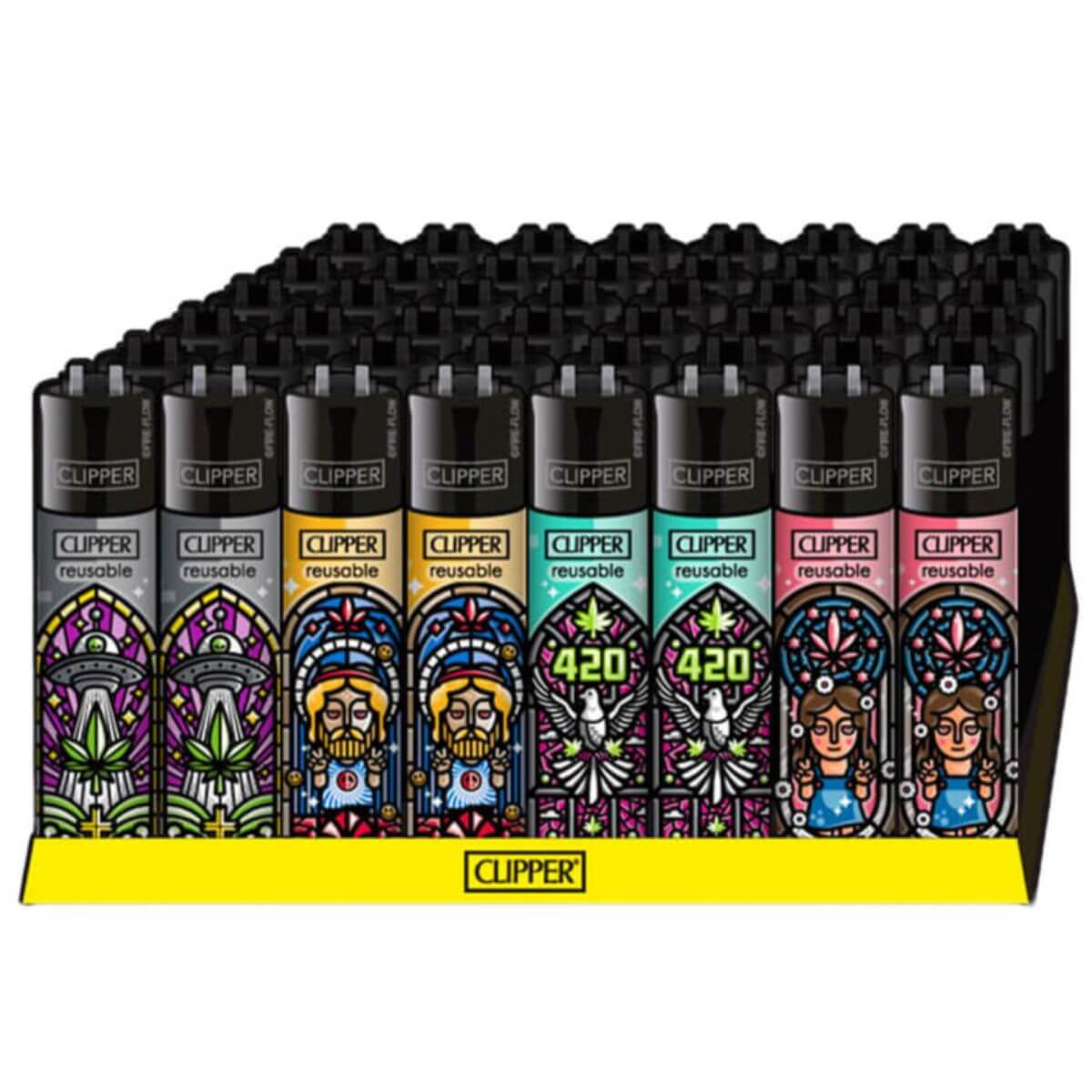 La colección Clipper Lighters Classic Church Windows (48 unidades/expositor) presenta intrincadas ilustraciones inspiradas en vidrieras en los fiables encendedores recargables de Clipper. Cada pieza presenta vibrantes patrones geométricos que recuerdan a las ventanas de las catedrales, combinando arte con funcionalidad práctica. Empaquetada en una bandeja de exposición de 48 piezas, esta serie es ideal para tabaquerías, tiendas de regalos y minoristas de estilo de vida que buscan productos visualmente llamativos, coleccionables y ecológicos.