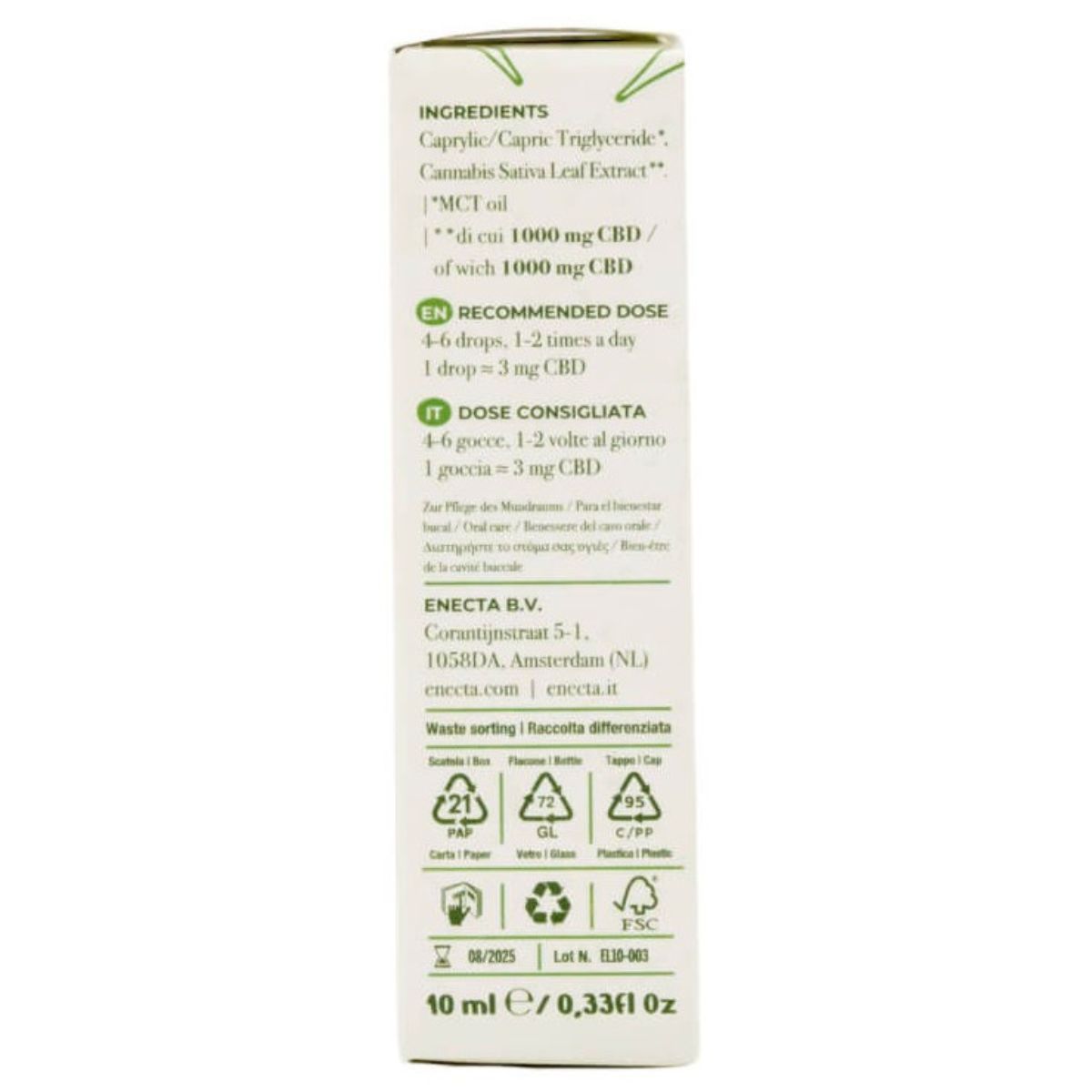 - 1 × Frasco cuentagotas de vidrio ámbar de 10 ml de Enecta CBDay Classic 10% CBD Oil