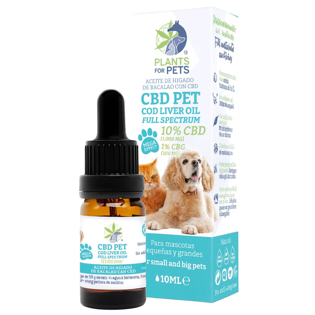 Plants for Pets CBD Aceite de Hígado de Bacalao de Espectro Completo es un aceite tópico aromático para mascotas presentado en un compacto frasco cuentagotas de 10 ml. Combina CBD de espectro completo derivado del cáñamo con aceite de hígado de bacalao para crear una fórmula suave y fácil de aplicar de estilo cosmético, adecuada para uso tópico y exhibición minorista dentro de las categorías de cuidado de mascotas que cumplan con la normativa.