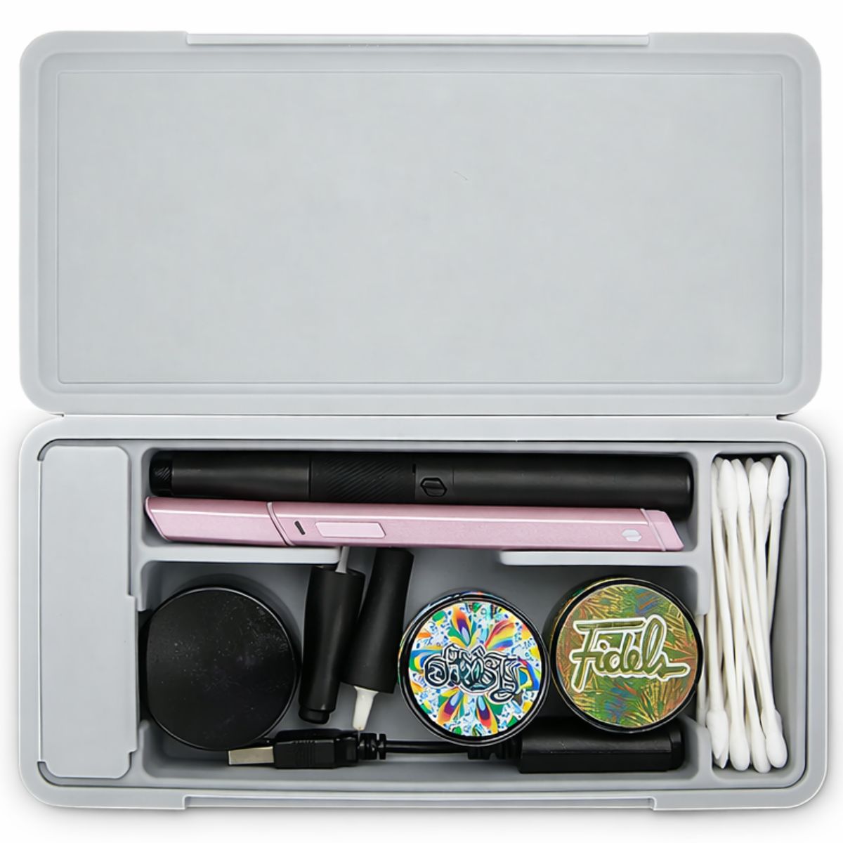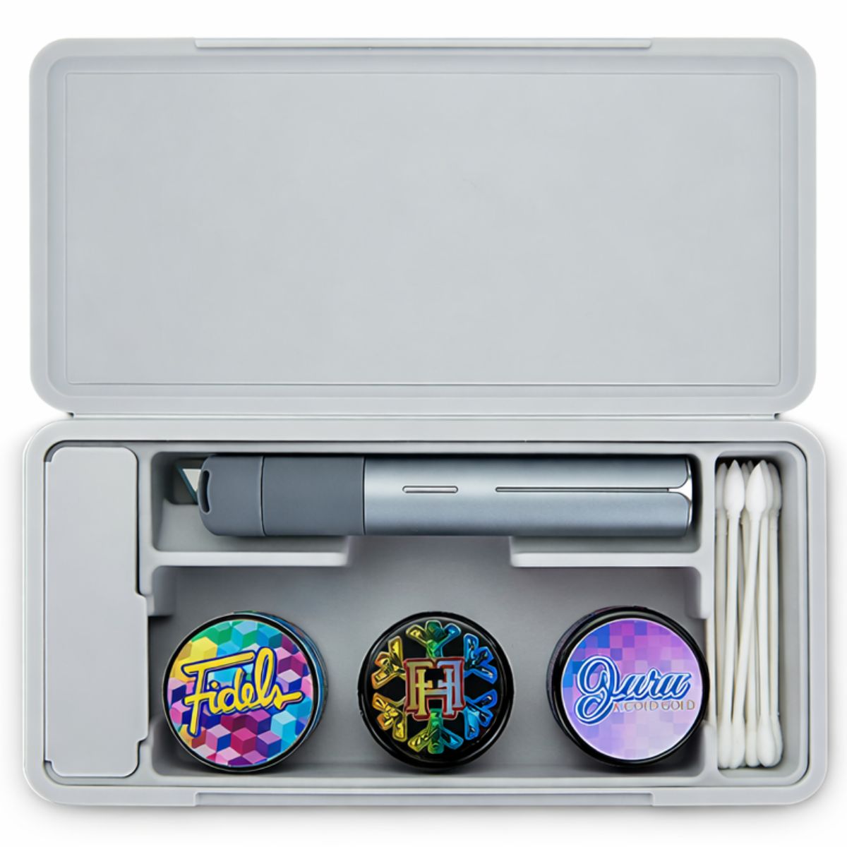 El estuche de viaje Puffco Pivot Pearl es un accesorio de almacenamiento protector diseñado específicamente para su uso con la plataforma de vaporizador Puffco Pivot. Diseñado para alojar el dispositivo y los accesorios compatibles seleccionados, este estuche de viaje permite un almacenamiento seguro y un transporte organizado durante la manipulación diaria o los viajes.