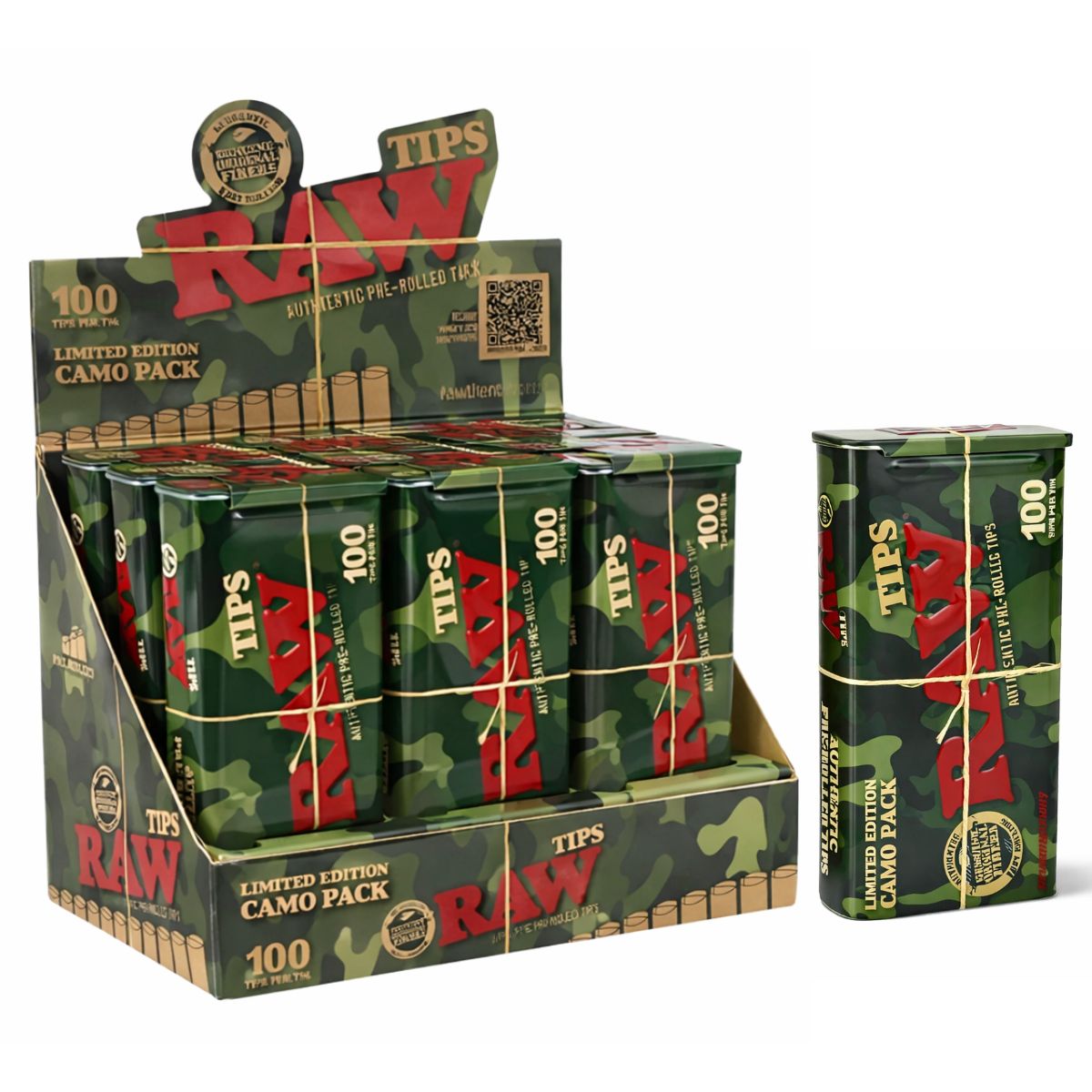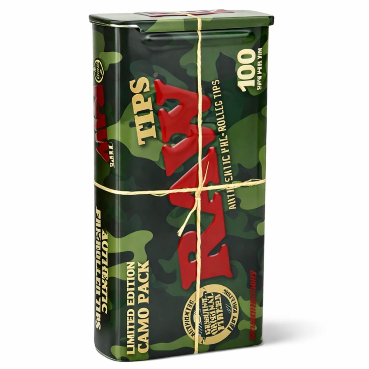 Producidos por RAW, estos tips mantienen los estándares de accesorios establecidos de la marca al tiempo que introducen un diseño de camuflaje de edición limitada. La presentación con temática de camuflaje añade diferenciación visual y atractivo coleccionable sin alterar las características funcionales de los propios tips. El formato de lata compacta ayuda a proteger el contenido durante el almacenamiento y el transporte, al tiempo que facilita la portabilidad.
