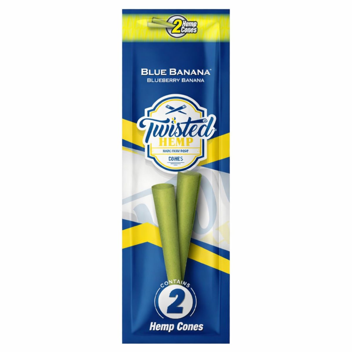 Los conos Twisted Hemp Cones Blue Banana son accesorios pre-enrollados para fumar, desarrollados para mercados de accesorios para fumar de uso adulto. Fabricados con papel de liar a base de cáñamo, estos conos ofrecen una opción de material natural al tiempo que mantienen una estructura, tamaño y presentación consistentes en todas las unidades. La variante Blue Banana es solo un nombre comercial de sabor y no implica ningún efecto sensorial, aromático o funcional.