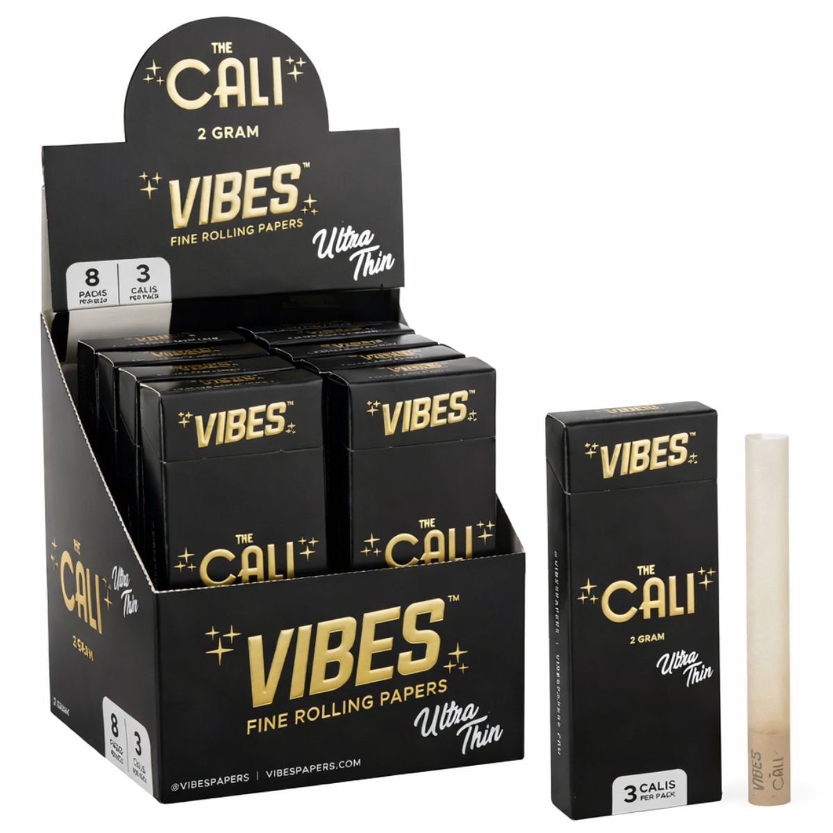 Producidos por VIBES, los Cali Cones se suministran preenrollados para garantizar una presentación uniforme y comodidad en todas las unidades. La construcción en papel ultrafino ofrece un tacto refinado, a la vez que conserva la durabilidad necesaria para un llenado y uso fiables. La forma uniforme del cono favorece un rendimiento predecible y una apariencia comercial limpia y profesional.